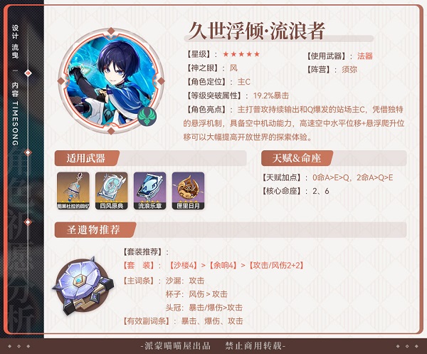 (辅助能力较强,不过比较吃命座,0命减风抗加风伤,6命加风爆伤)