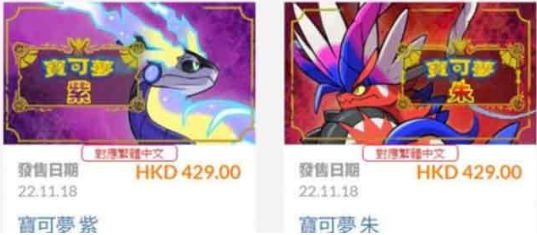 这两款宝可梦朱、紫价格都是一样的,都是429港币,不过在玩法内容是有一些差别。