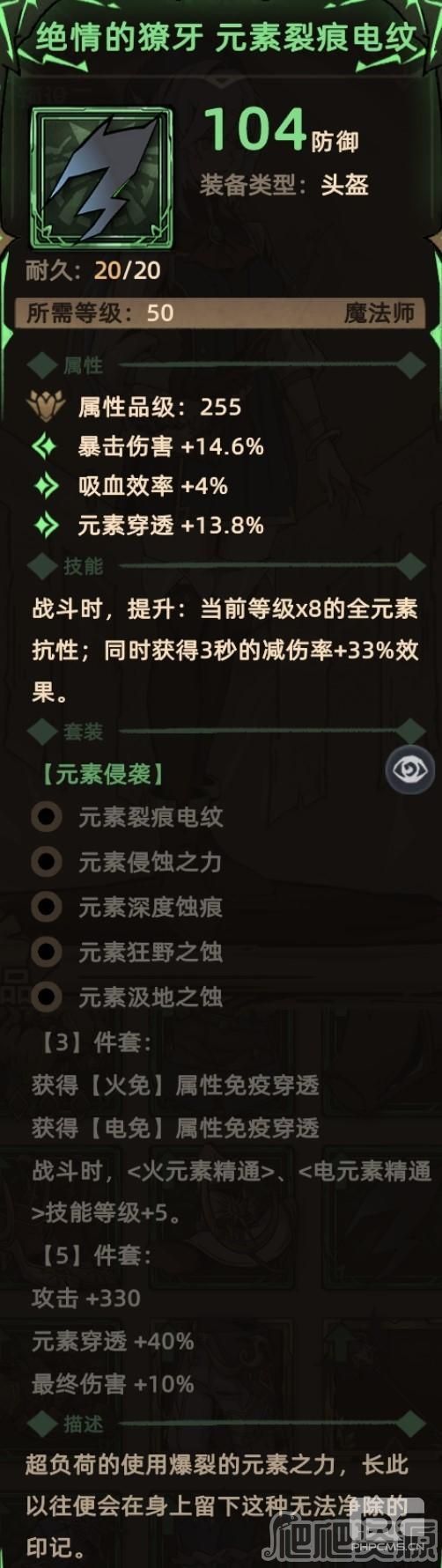 关键词:随机进入,元素抗性,减伤,生命(套装效果),减伤(套装效果)。