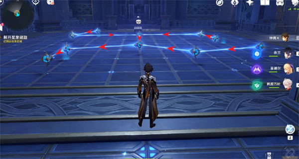 8:返回秘境去西北角的房间,然后解密,答案如图所示,然后开宝箱,继续跟着星星,然后我们不是挑战了,我们要先找到一个星星,我们需要在进入房间之前,把东北角的一个装置,取出碎片,用取下来的碎片和开始获得的开启西南角的大门,然后星象解谜,然后跟着星星,在星星海中找到目标星星即可。