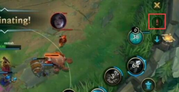 1、首先我们进入游戏对局之中,在右上角大家可以看到一个感叹号一样的标识,看到之后点击进去;