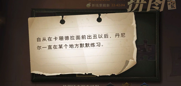 1:游戏中提供的线索是自从在卡珊德拉面前出丑以后,丹尼尔一直在某个地方默默练习;