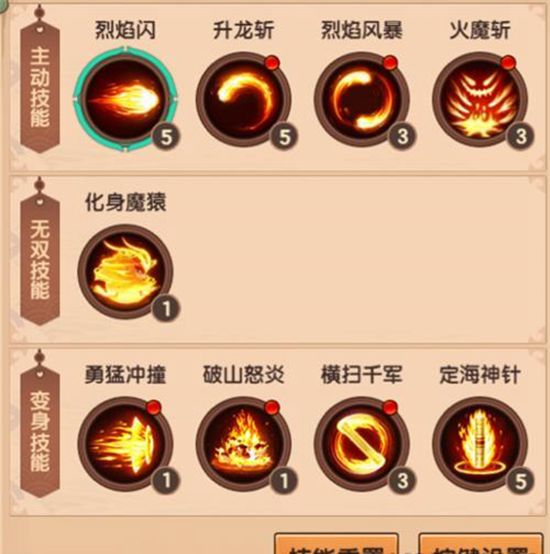 在刷到秦广王前,技能加点还是可以不动的,主动技能选一个作为主要输出点到5级,其他技能作为辅助位移,点1-3级(视回魔决定)就可以了,无双的话就以定海神针来输出,其他也是1-3就可以了。