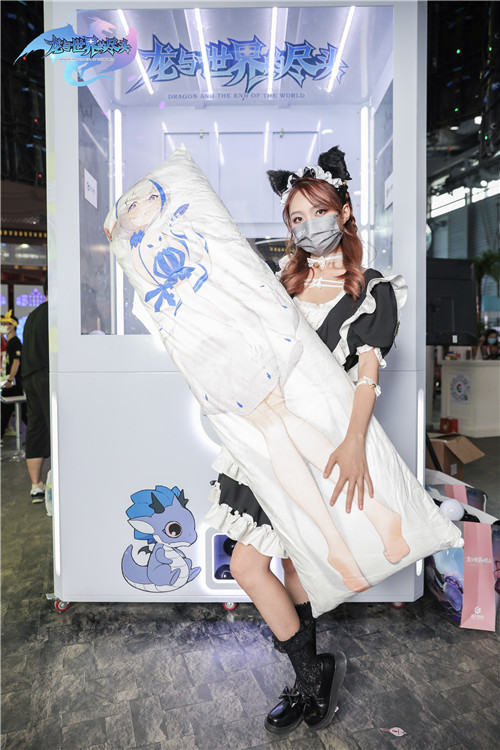 除了夏日消暑必备的凉扇,和充满游戏元素的立牌、纸袋外,展方还制作了从龙蛋中孵化的雏龙作为毛绒肩饰和近1.5米的等身抱枕,作为日用或装饰继续陪伴玩家左右。