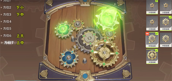4:方位6放置一个大型齿轮,然后方位7放置一个中型的齿轮,然后我们的任务就完成了,就可以领取六十原石了。