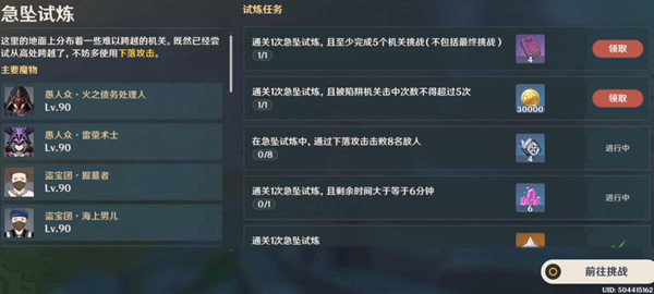 4:每个试炼拥有不同的地脉异常,敌人和陷阱机关的分布也有所不同,试炼中只能使用给定的角色无法产生元素共鸣;