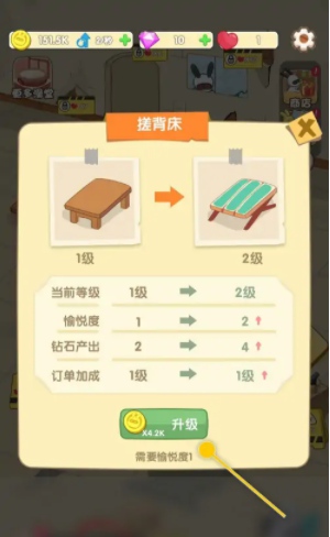 点击“升级”按钮,这样就成功升级搓背床提升愉悦度。