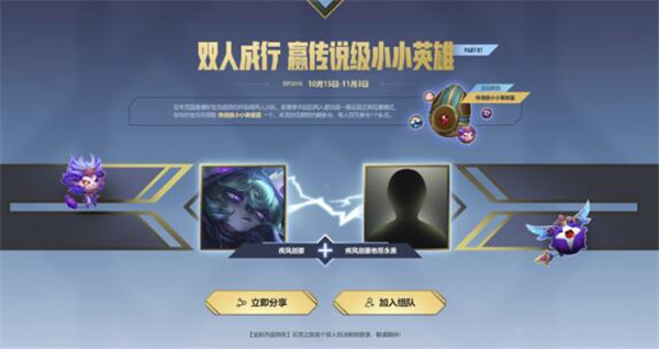 3、往下翻可以看到一个组队的小活动,把这个活动分享给自己的好友;