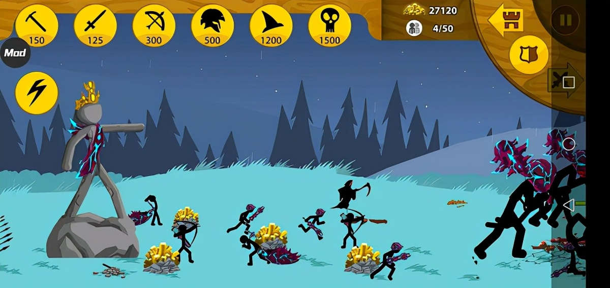 火柴人战争遗产是一款非常好玩的火柴人策略塔防游戏,游戏中玩家将扮演勋章之国的一位领导者,带领一堆火柴人不断进行战斗,以此扩大自己的领土范围,由于购买兵种是需要花钱的,所以你不但需要指挥部分的去攻击敌人,还要留一些开采黄金来进行赚钱,并在去战斗攻击的时候想要快速的取得胜利,同时因为有些兵种之间属性是相克的,玩家还需要根据兵种的不同,进行合理搭配组合,只有合理运用火柴人才能将其战斗力发挥到最大,十分考验你的领导和策略能力。除此之外,游戏内还设有多个战役关卡供你选择,每个关卡模式内容都不一样,极大地增加了游戏的可玩性,还有很多火柴人皮肤可以购买,使它们的外观不在单一,并且附带附加额外属性,增加了它们的战斗能力,你可以更好的进行操作,从而取得游戏胜利。
