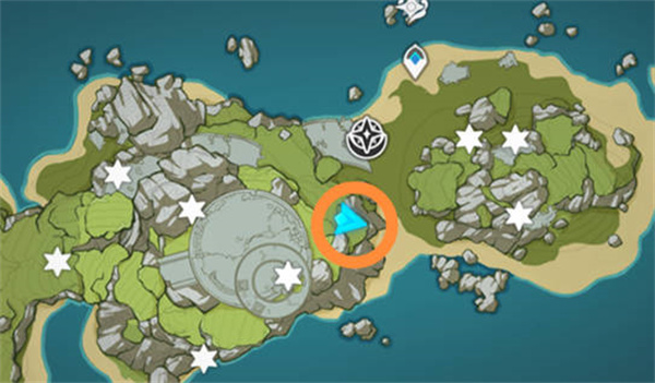 9:第八个,来到地图这个位置(这个是岛屿改变前的地形),就可以看到我们第八个凝核了,第八个也是沉入水面之后才能获得的。