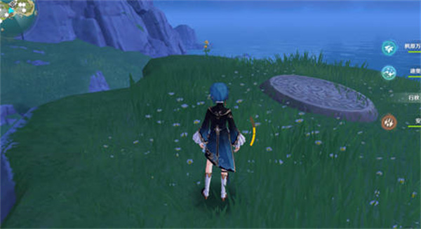 7:第六个,推荐带风系的,来到如图位置,可以看到一个可以触发的四叶草风车,触发风场后,来到天空就可以看到我们第六个凝核的位置了;