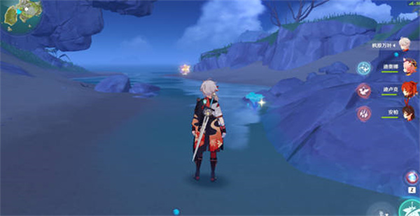 8:第七个,来到地图这个位置,上前触发,凝核就会出来,我们就跟着他走就可以了,跟着凝核我们再次回到变化前的岛屿,等他停下我们就可以拿到第七个凝核了,这个第七个需要沉入水面之后才能获得的;