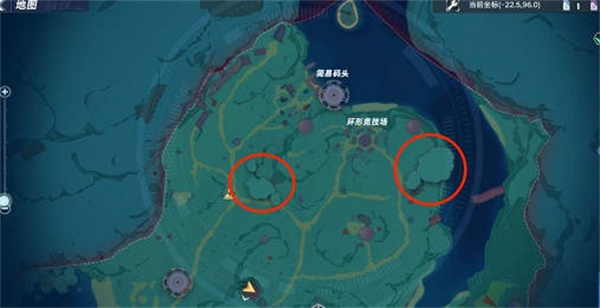 2:接下来就是精英怪,第一个光陇的位置,他会在零号基地的上方,图中标注的两个点位来巡逻,你们去了就可以看到了;
