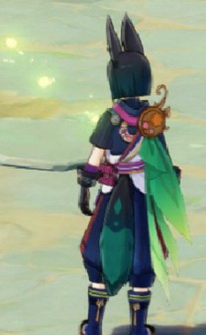 “通塞识”效果示意,三个绿色的光球,每次重击二段蓄力发射后减少一个光球。