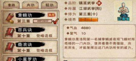 青蛾功是洛阳第一人李林蔚在夜观飞蛾时悟出的内功。用户需要无惧强敌,至死方休,才能发挥出这个内功的全部威力。所以青蛾功最适合李棍。