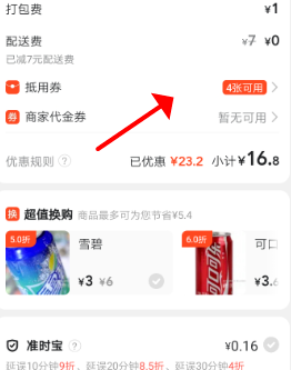 8、换取成功以后,用此红包。可以见到已经满减优惠了。