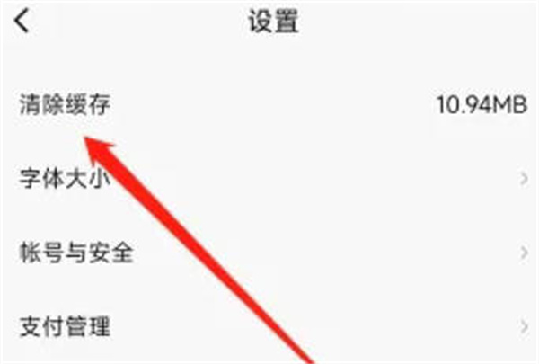 当我们点击设置之后,然后我们需要点击清除缓存选项,如图所示的位置。