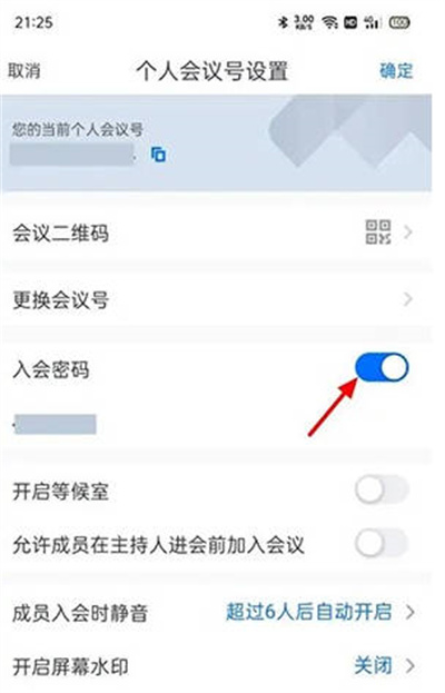 关闭了之后,然后点击右上角的确定,再点击下面的进入即可,这个时候快速会议的密码我们就关闭了。