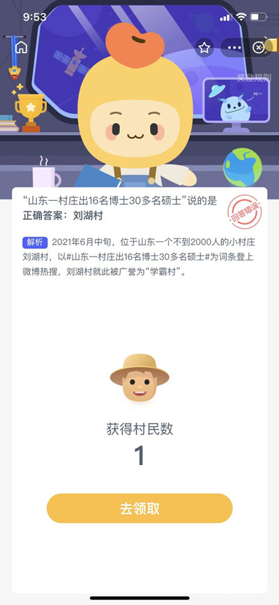5:答对了有三个村民可以领取,答错了只能领取一个。