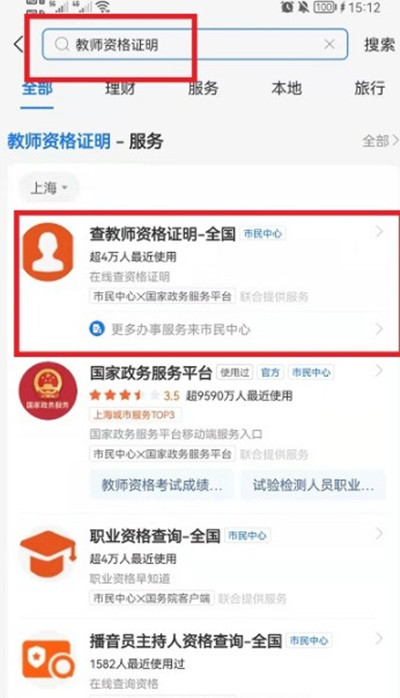 支付宝怎么查询教师资格证明