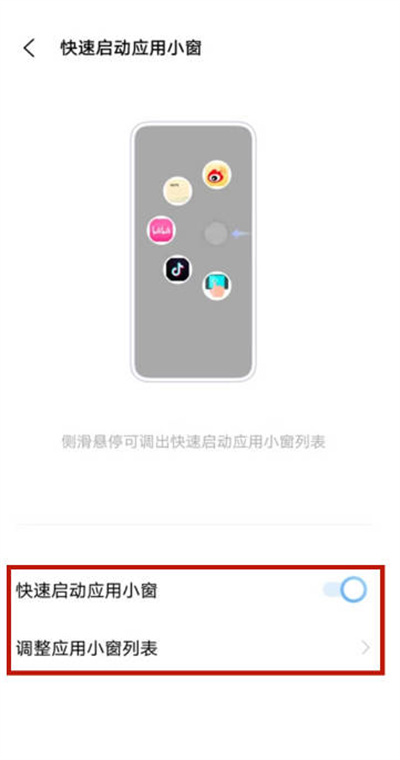 开启之后,然后我们点击下面的调整应用小窗列表,进入选择应用即可。
