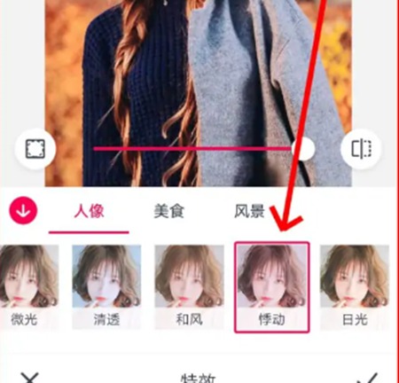 ¡¡¡¡3.´ÓÊÖ»úÏà²á´ò¿ªÒ»ÕÅÕÕÆ¬½øÐб༣¬ÎÒÃǵã»÷ÕÕÆ¬Ï·½µÄÌØÐ§°´Å¥¡£
