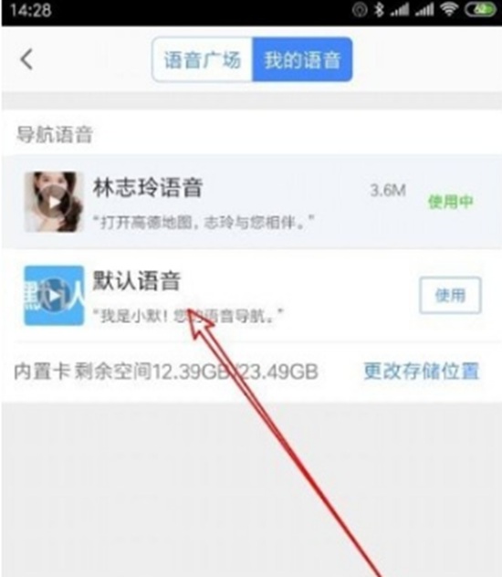 5.最后在这个查看我的语音界面,找到默认语音这个选项,点击默认语音选项右边的使用按钮,点击之后就可以设置回默认的导航语音了。