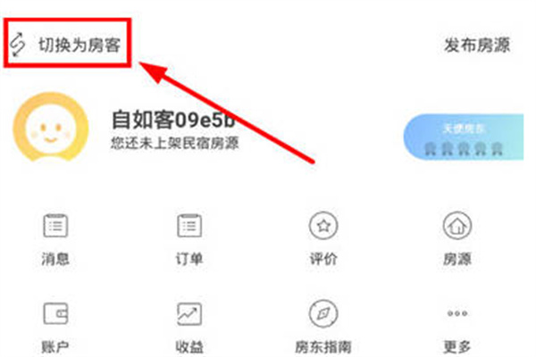 我们需要设置密码必须切换为租客,我们点击我的,然后在左上角可以点击切换。