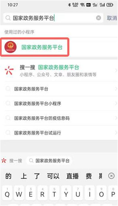 Ê×ÏÈÎÒÃÇ´ò¿ªÎ¢ÐŵÄËÑË÷À¸£¬È»ºóÕÒµ½¹ú¼ÒÕþÎñ·þÎñƽ̨С³ÌÐòµã»÷½øÈë¡£