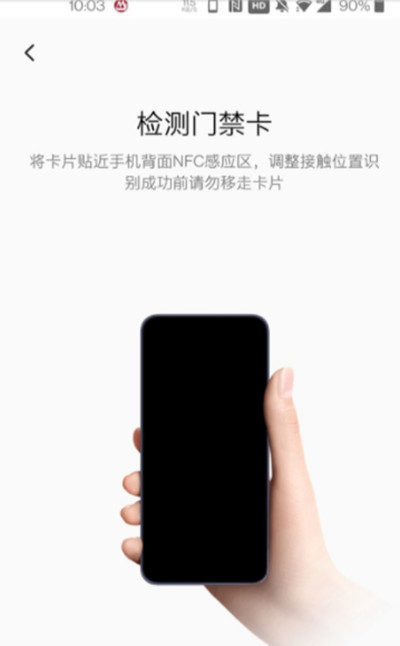 在实体门禁卡的录入界面中,通过将门禁卡靠近nfc区域读取卡片的信息,即可完成录入实体门禁卡的操作。