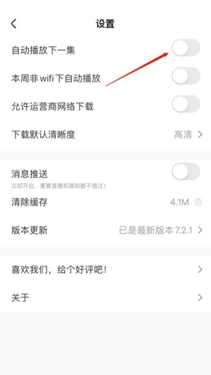 4.最后关闭自动播放下一集,这样播放视频的时候,系统将不再自动播放下一集了。