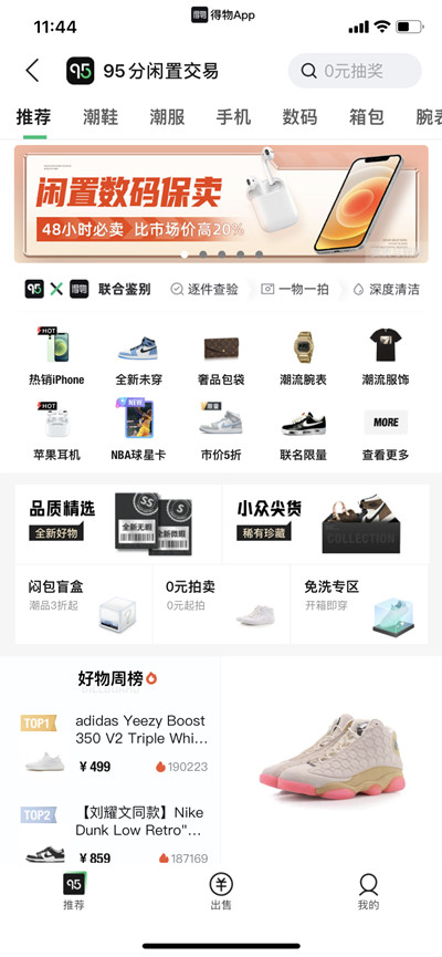 点击95分闲置之后,就进入了毒的二手交易平台,挑选自己喜欢的物品即可。