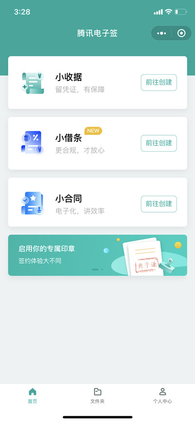 进入腾讯电子签的设置之后,就可以看到有小借条的选项,点击右边的创建。