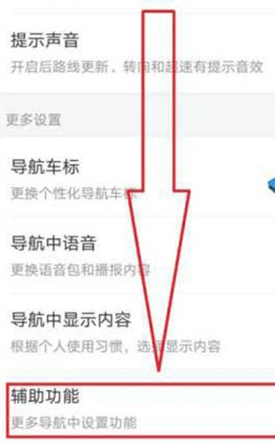 进入导航设置之后,找到下面的辅助功能,并点击。