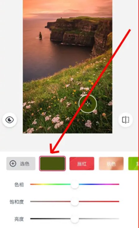 6.如果色块中没有图片的色彩,我们可以点击左侧的选色工具到图片上进行吸取,然后调整这个色彩。图片处理完成后保存就可以了。