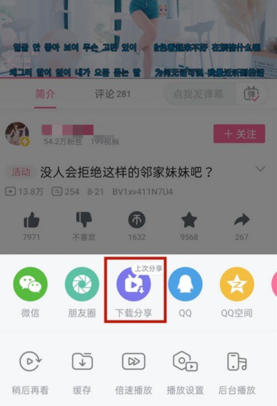 点击之后就会弹出相应菜单,然后选择下载分享即可。