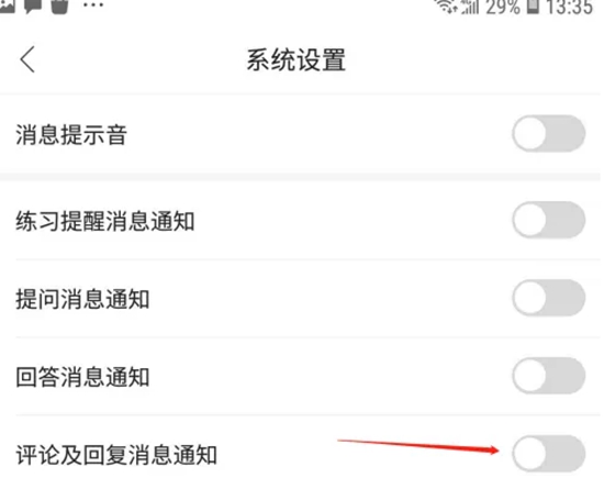 进入后,将评论及回复消息通知后的开关按钮点击关闭即可。