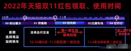 10月31日晚8点和11月10日晚8点是2022年淘宝天猫双十一开始售卖的两个时间点,也是领到的红包能够抵扣现金使用的两个开始时间。
