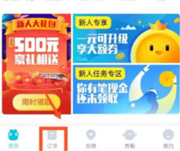 第一步,点击订单我们打开去哪儿旅行软件,然后我们点击下面的订单功能。