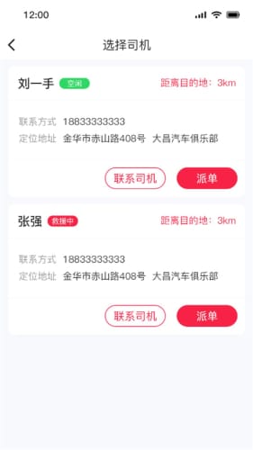 3. 司机管理:可查看所有司机信息,支持电话联系