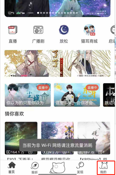 点击我的进入猫耳软件之后,点击右下角我的选项。