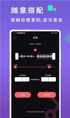 2、音乐剪辑:支持音乐剪辑,合并,混音等高级功能,轻松玩转铃声,音乐;