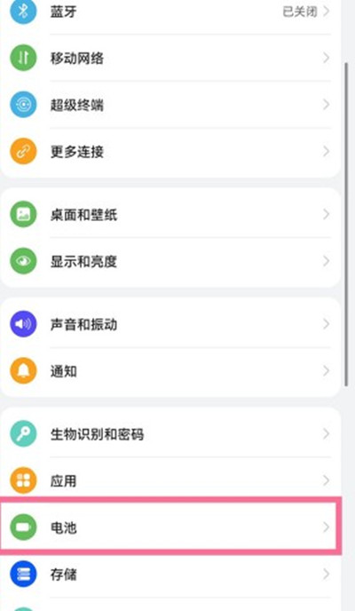 点击电池打开手机中的设置,然后在设置中找到电池的选项。