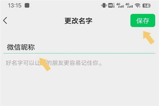 点击名字,界面会再次切换,输入需要设定的微信昵称,然后点击保存即可。如下图: