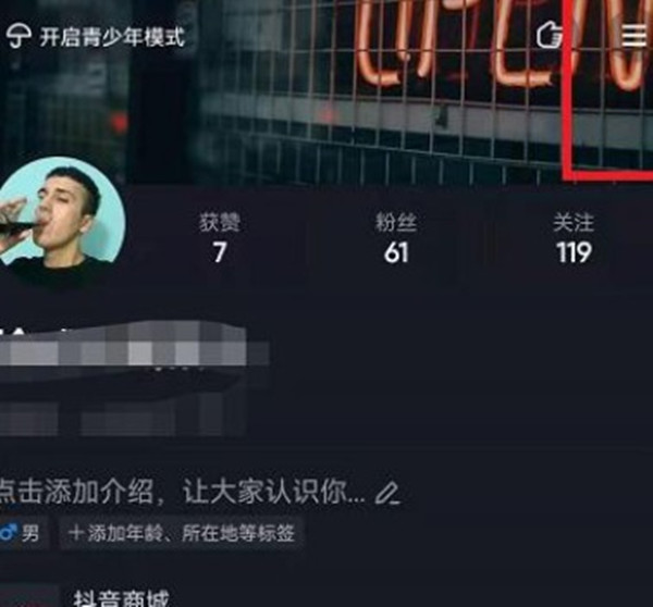 点击菜单打开抖音软件,然后点击我的,再点击右上角的三条横线。