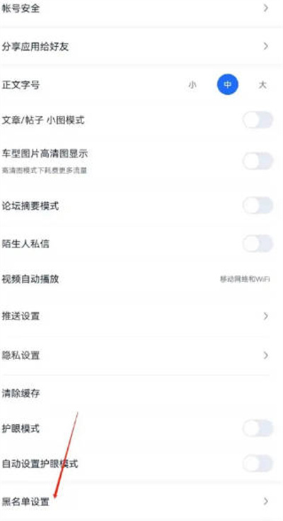 进入设置之后,我们滑动到最下面,就可以看到黑名单设置了,我们进入即可查看黑名单。