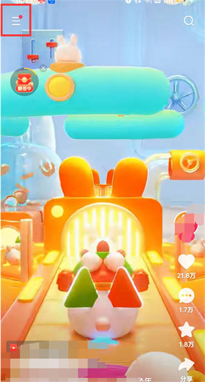 第一步,点击菜单我们打开快手软件,然后我们点击左上角的三条横线功能。