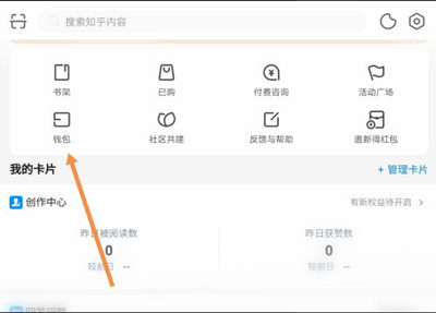 首先需要用户打开知乎,进入到主页面,点击下方我的选项,进入到我的页面后,找到关于钱包的功能选项,点击并进入钱包页面。