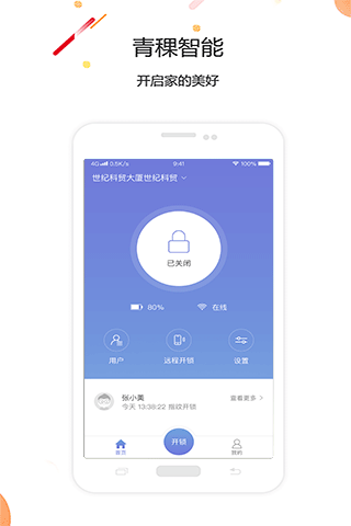 青稞智能app是一款智能门锁的软件,能帮助用户用手机实现开锁的功能,用户只需将软件和青稞智能门锁绑定就能实现手机一键开锁,用户还能远程实时查看家中门锁的情况,具有多种功能,非常好用。