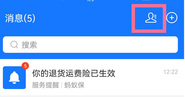 打开支付宝,点击好友页面,点击最上面的通讯录。